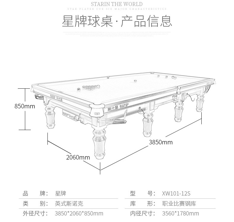 - 星牌 XW107-12S 英式斯諾克臺球桌