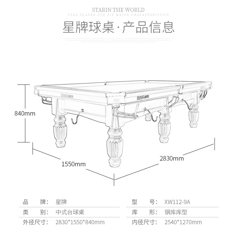 - 星牌 XW107-12S 英式斯諾克臺球桌
