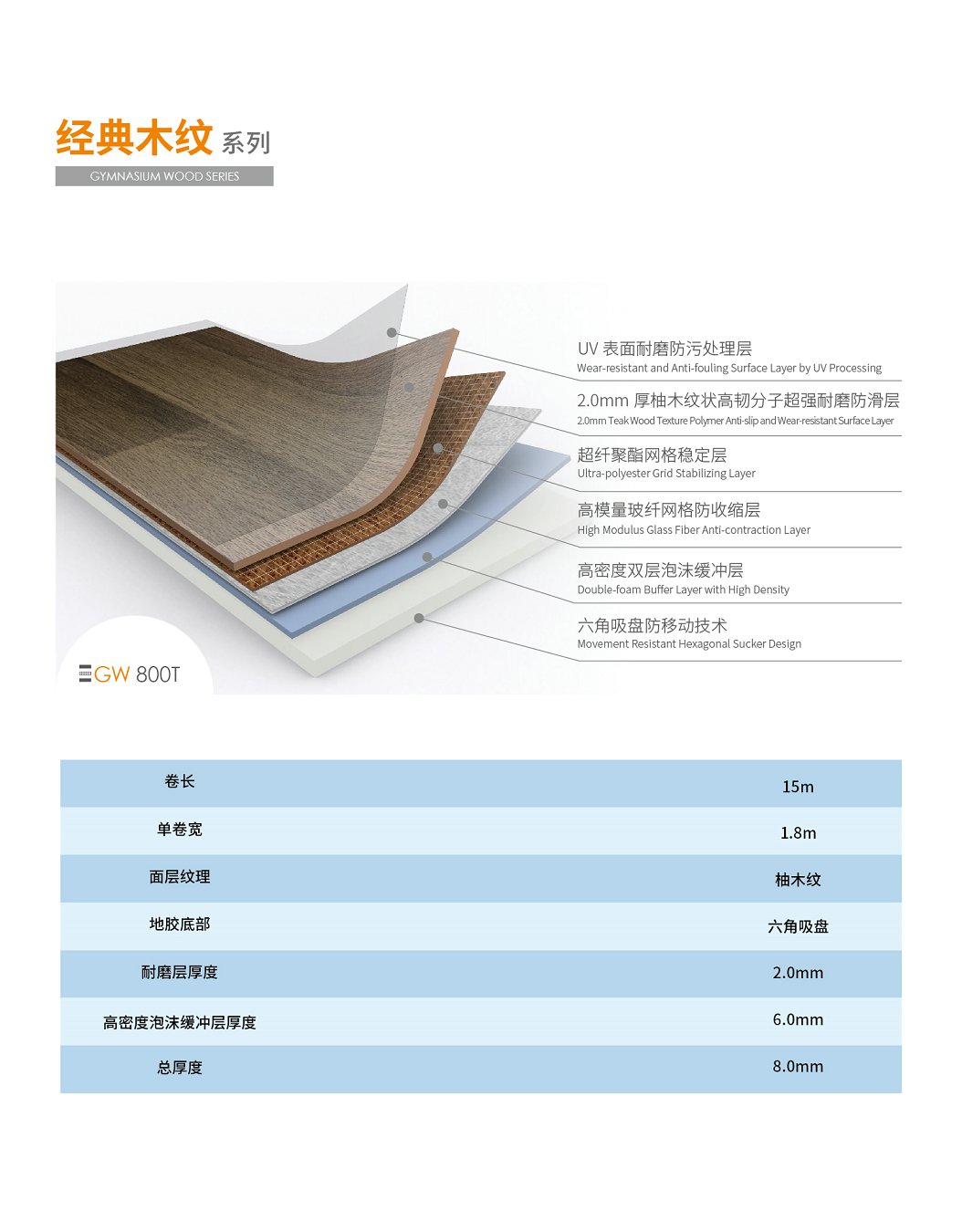天速綜合地膠籃球場(chǎng)地膠經(jīng)典木紋系列GW 800T柚木紋