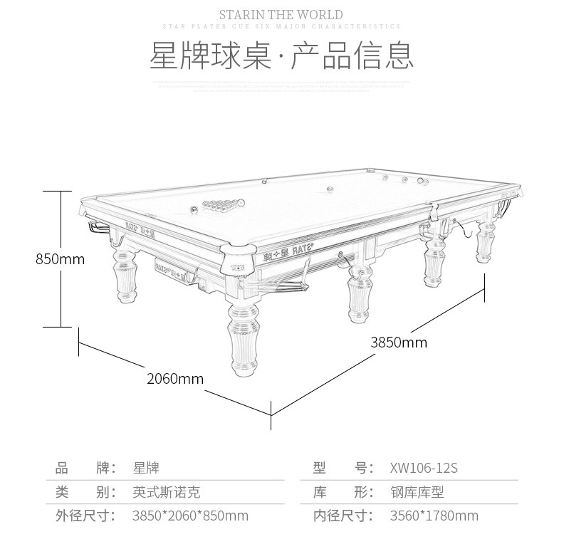 星牌 XW106-12S 英式斯諾克臺球桌
